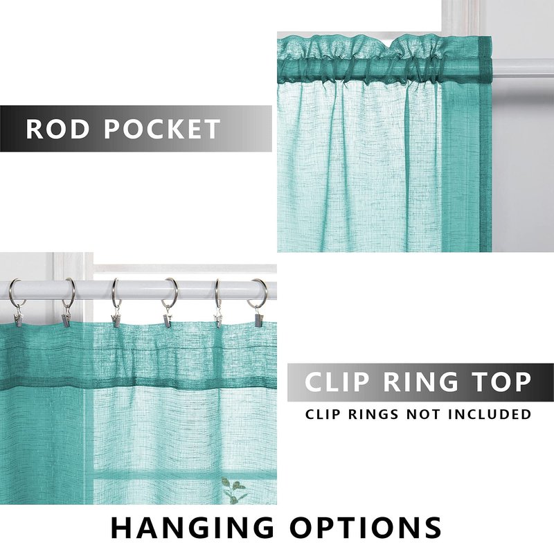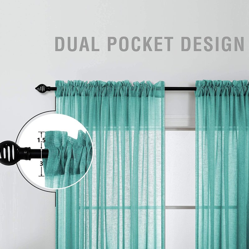 KOUFALL Teal Sheer Curtains 63 Inch Length for Bedroom 2 Panels Set Rod Pocket Faux Linen Window Decorative Drapes for Living Room Teen Girls Room Laundry Room 52x63 Inches Long