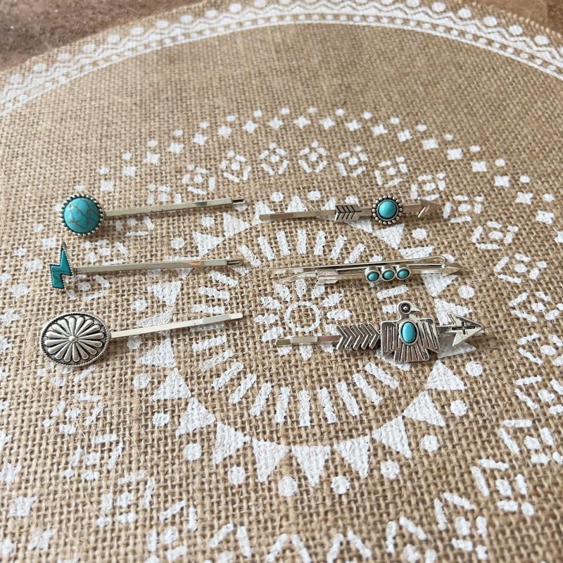 KOVOLITU Women's Western Turquoise Hair Clips Set of 6 Decorative Bobby Pins Boho Hair Barrettes-Flash