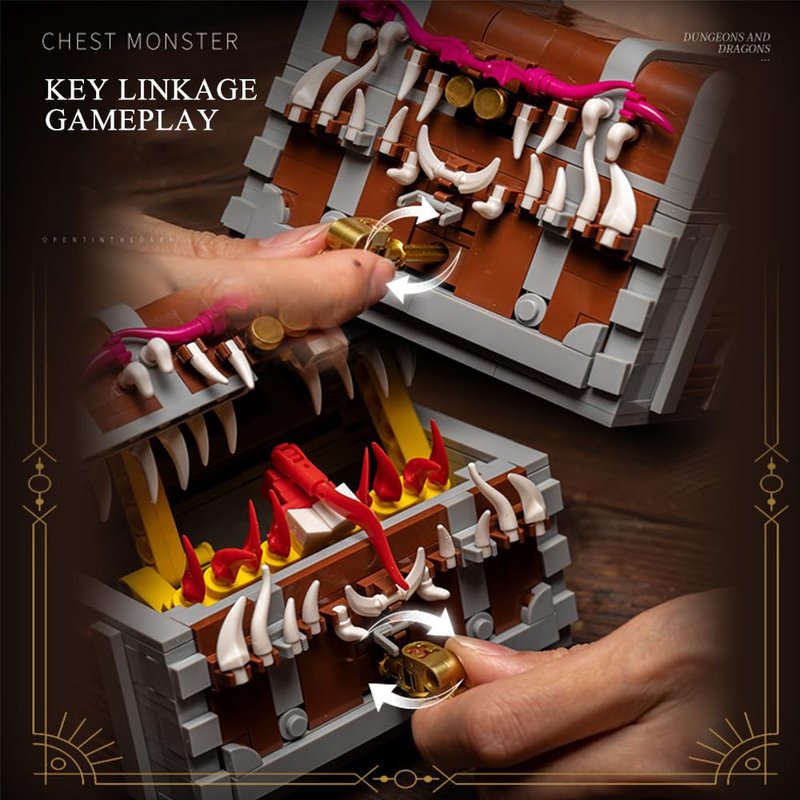 - 【Dice Chest Building Set】: The design of this Mimic building block is inspired by the popular game "Dragons’ Game", presenting a unique Mimic image in the fantasy world. This Mimic building block shows the charm of the mysterious treasure chest in the fantasy world through detailed design and creative functions.