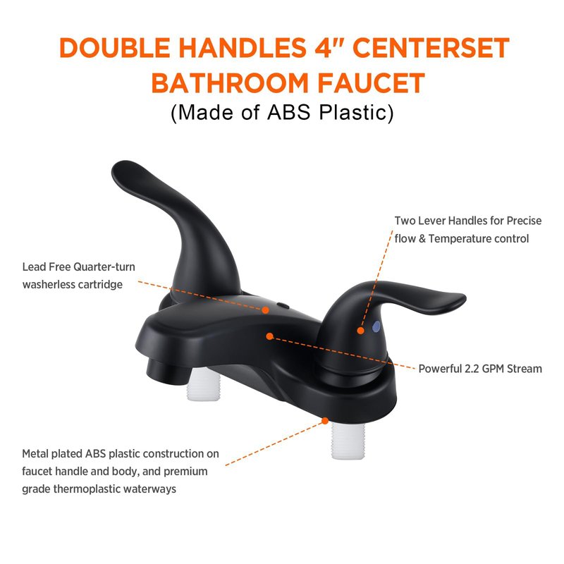- 【Specifications】Works on any 4" Centerset 2-hole sink opening. Flows up to 2.2 GPM. Includes pop-up drain. Product is CUPC, NSF 61-9, NSF 372 certified, and ADA compliant.