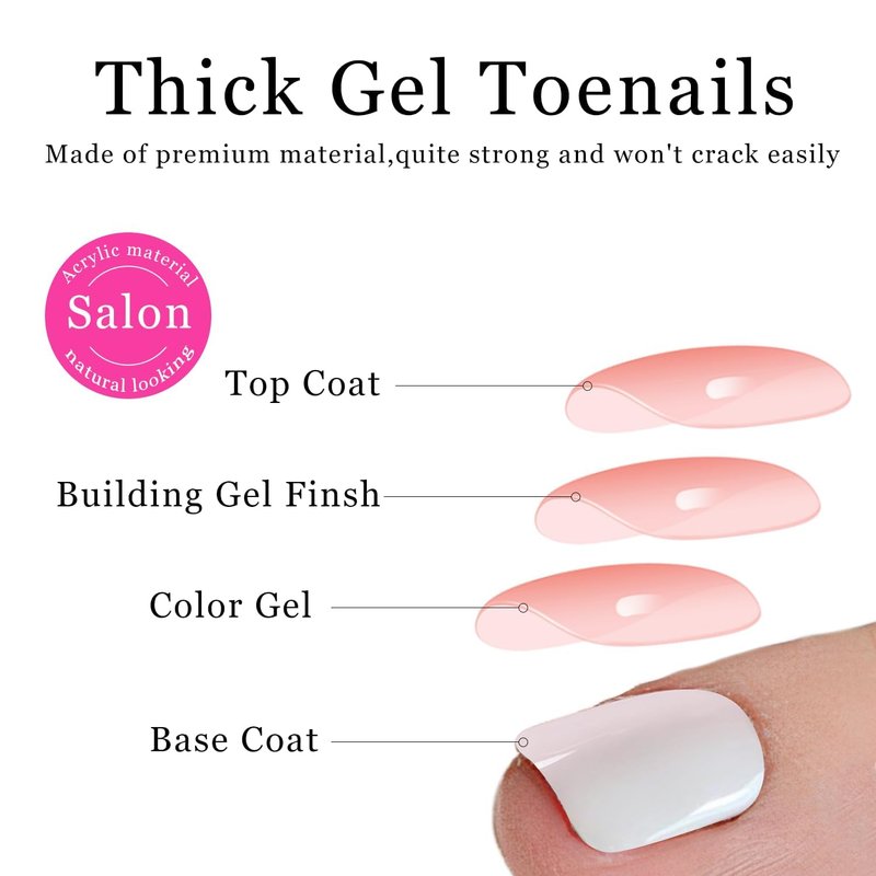 - 💦【Perfect For Every Occasion】Acrylic press on toe nails stickers are very suitable for different occasions,such as party,prom,travel,dating.Short length toenail press nails glue will not affect your normal life.