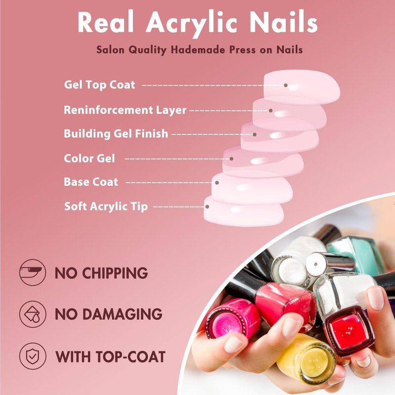 - Well fitting,Natural Looking:The short coffin nails glue on come in a delightful array of natural beautiful color choices.Press on false nails medium length completely cover your nail beds without any gaps or edges that don't fit properly.