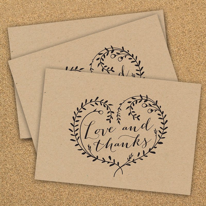 These attractive thank you notes are 4 7/8” x 3 ½” folded, are printed on recycled, 100# Kraft cover stock and made in the USA. The card pack contains 36 thank you note cards with the design printed in black ink. Coordinating envelopes are included, cards are blank inside, and envelopes are not personalized. These thank you notes are perfect for sending following weddings, showers, birthdays, graduations and more! The smooth, non-glossy finish of the heavy paper makes it easy and convenient to pen a quick note. With an attractive design and special wording, these appealing thank you cards will convey your appreciation to those who are so special to you.