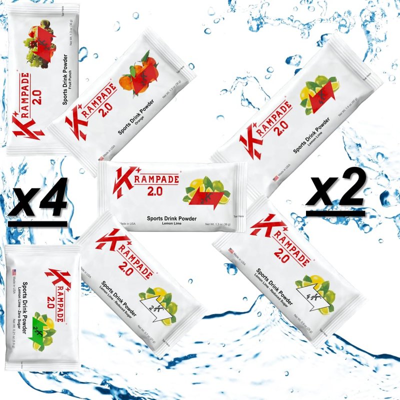 Krampade 2.0: 50 mg Magnesium + 2000 mg Potassium Cramp Relief Electrolyte Drink Powder: Faster Recovery, Slower Fatigue, Optimized Hydration | 24 Single-Serving Packets (Variety Pack)