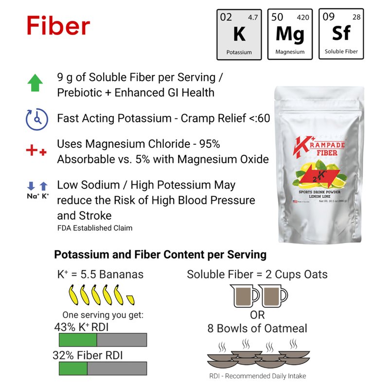 98% of Americans do not get enough potassium in their diet. In fact, you should have at least 2 parts potassium for every 1 part sodium. Krampade enhances overall well being simply by helping you get your salt right by balancing electrolytes. Low sodium electrolytes are critical to proper function and Krampade is the only product with the right amount of potassium to effectively replenish your tissues and optimize bodily function. From head to toe, Krampade's unique low sodium electrolytes but high potassium electrolytes simply makes every bodily system function better, muscles, skin, heart, brain, lungs, gut. Give Krampade a try and see your life transformed today.