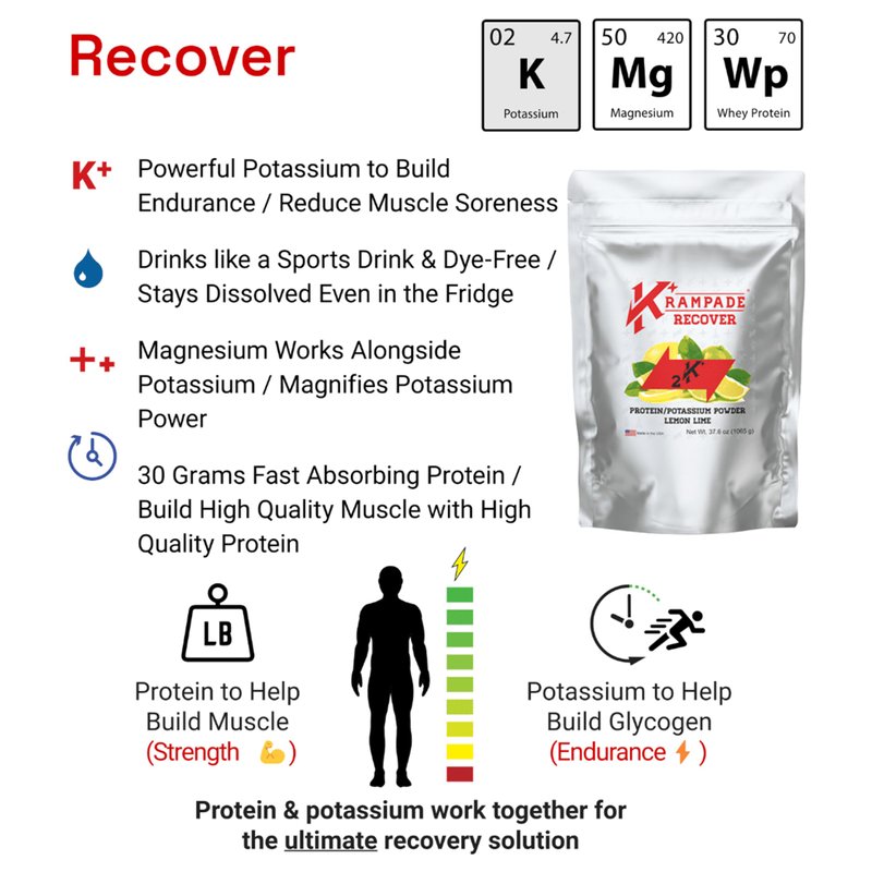 Krampade Recover is value added with 30g whey isolate protein powder for the ultimate post workout recovery drink. Plus, Krampade is a food, not a supplement because you should know exactly what is going into your body.