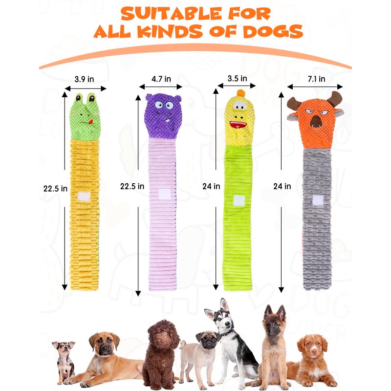 - Squeaky & Crinkle Dog Toys: The no stuffing dog toy features a squeaker inside the head and crinkle paper all over the toy, which grabs your dog's attention and makes them excited.