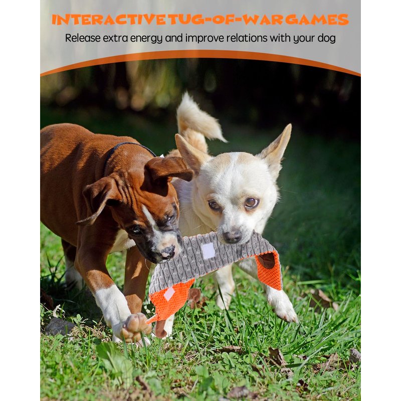 - Durable Interactive Plush Toy: Each toy is 22.5 inches long, perfect interactive toy for tug of war games with your puppies. Designed with soft plush surface and bite-resistant oxford cloth inside, the thickened fabric enhances durability and makes it strong enough for tugging and pulling.