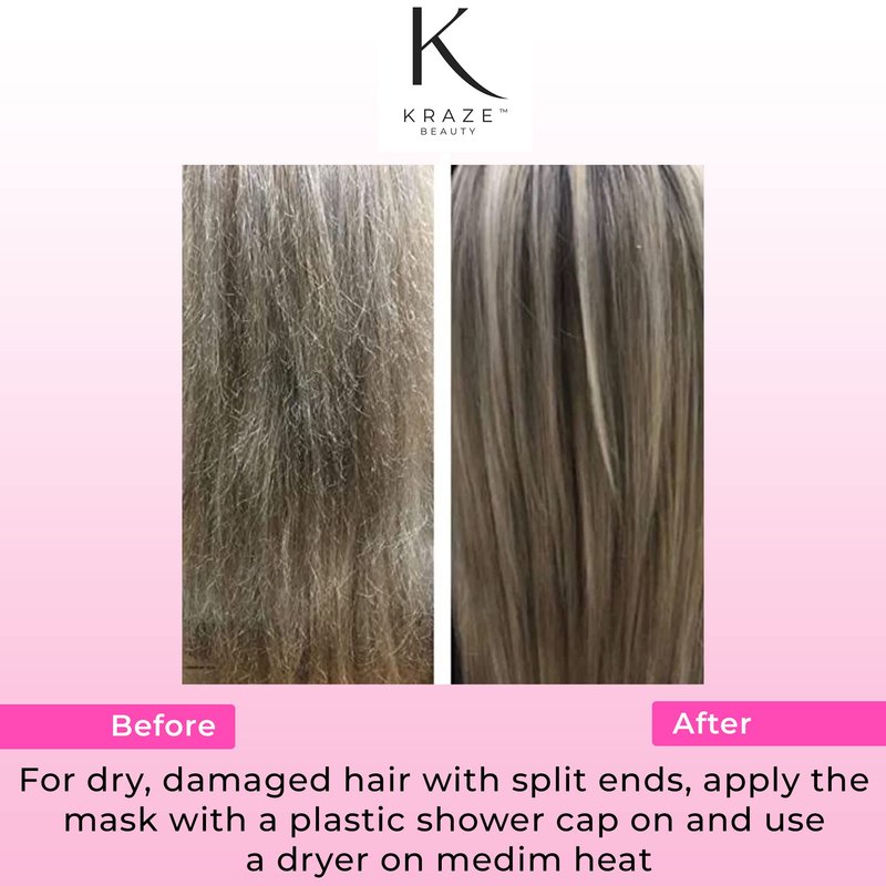 Kraze Beauty Keratin Infused Ceramic Mask is like botox for hair, repairing and taming all hair types with its keratin rich formula leaving hair smooth, soft, shiny and easy to manage for long periods of time. This keratin treatment is multi-functioning offering hair restructuring, immediate perceived sensory, conditioning, brightness, deep nutrition, strength and resistance, absolute reversal of hair damage, fiber recovery and sealing, protein mass replacement, normalization of hair cuticles all in one.