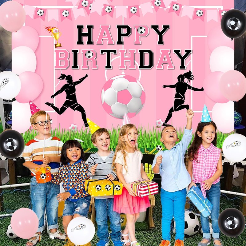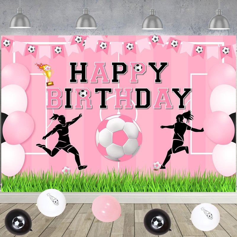 - Pink Girls Soccer Birthday Party: Our soccer happy birthday decorations for girls is sports theme and the main color is pink, which is suitable for girls. If you have a daughter who loves soccer, use the soccer happy birthday decorations for your birthday party and she will love it