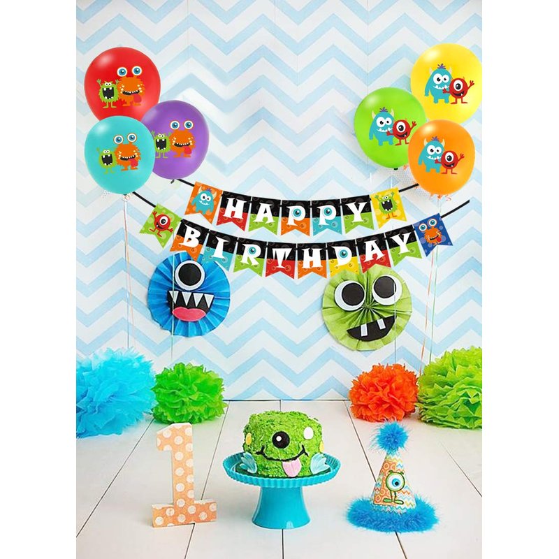 - Monster Bash Birthday Banner: Monster bash bunting banner is an lovely and impressive birthday decorations for your monster themed party, the vivid monsters on the pennant will add a lot of fun and laughter to your party sign.