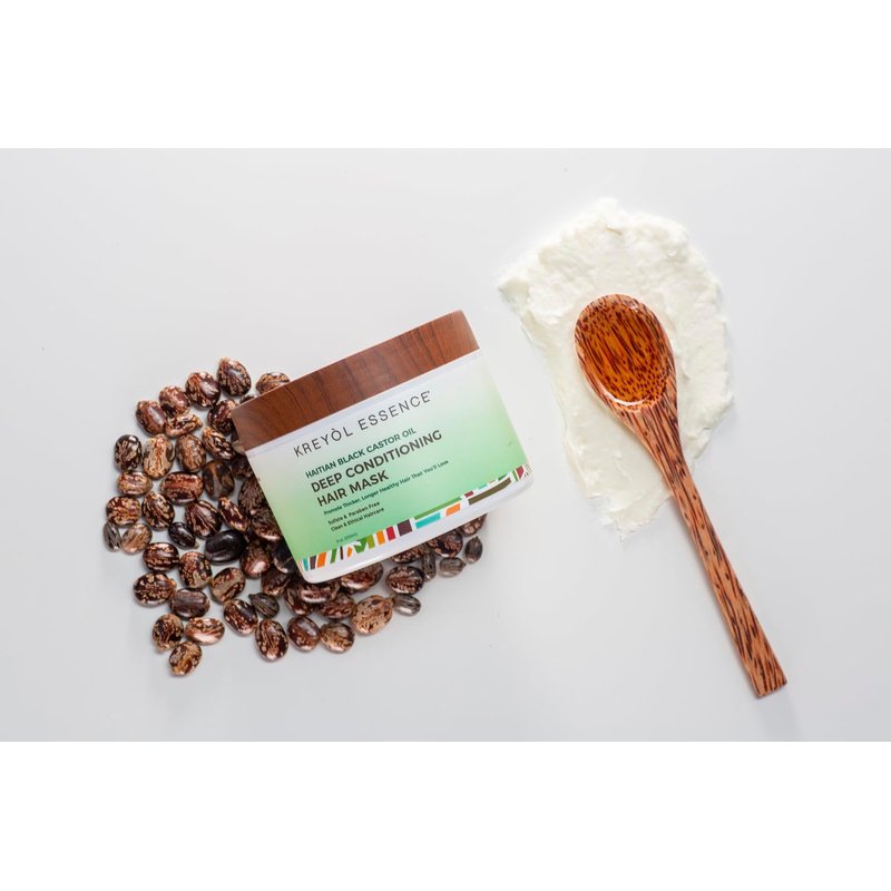 Deep conditioning hair mask infused with castor oil from Haiti with benefits for softness, hair growth, hair retention, moisture, soothing itchy and dry scalp and skin, hair repair and damage prevention