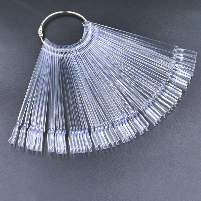 KRISMYA 200 Clear False Nail Sample Sticks - Transparent Fan-shaped Nail Art Tips Display Polish Board Display Practice Sticks Tool with Metal Split Ring Holder