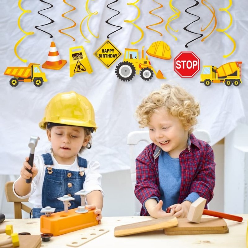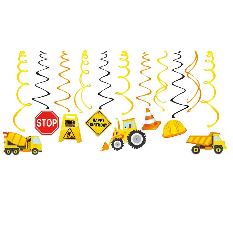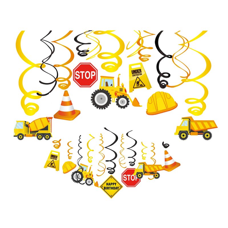 Kristin Paradise 30Ct Construction Hanging Swirl Decorations, Construction Trucks Birthday Theme Streamers, Traffic Zone Party Supplies, Kids Boy Toddler First Favors, Stop Sign Worker Decor
