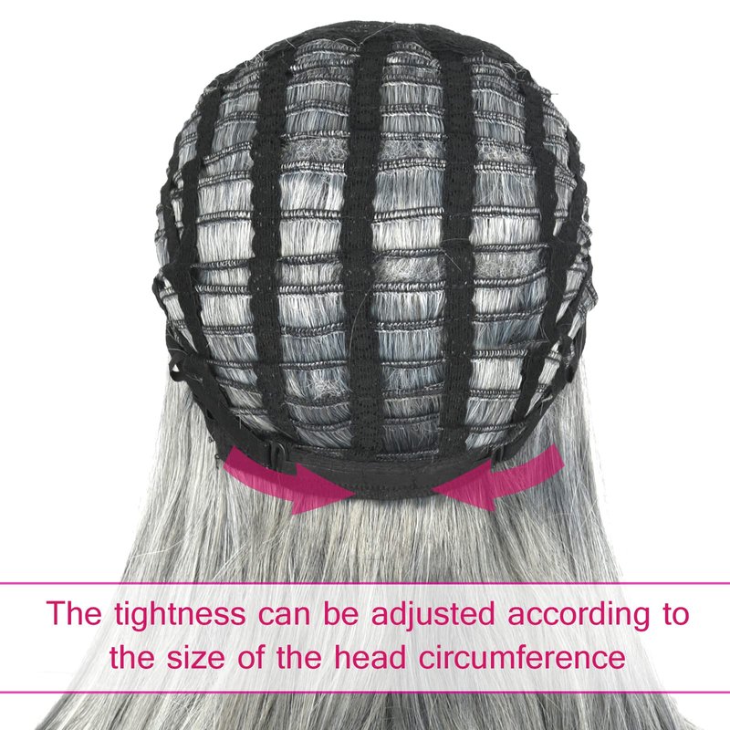 💖A1: The average cap size of this mixed silver gray wigs for white women is 22.5 inches, considering the difference in head circumference of each person, we have designed 2 adjustable straps on the back of the wig cap, which can be adjusted between 8 gears to meet most people's needs.