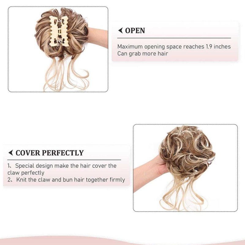 - 💖【Messy Bun】The messy bun hair piece for women features a claw clip and curly wavy hair extensions. It is designed with a chignon ponytail style, incorporating long beard synthetic tousled updo hair extensions.