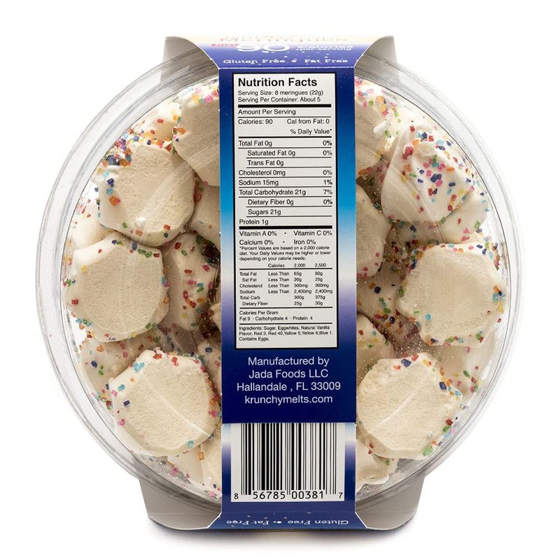 Krunchy Melts - Original Meringue Cookies - Birthday Cake Flavor - Meringues - Fat Free - Gluten Free - Nut Free - 90 Calories Per Serving - Low Calorie Snack - Sweet Treats - 4 Oz