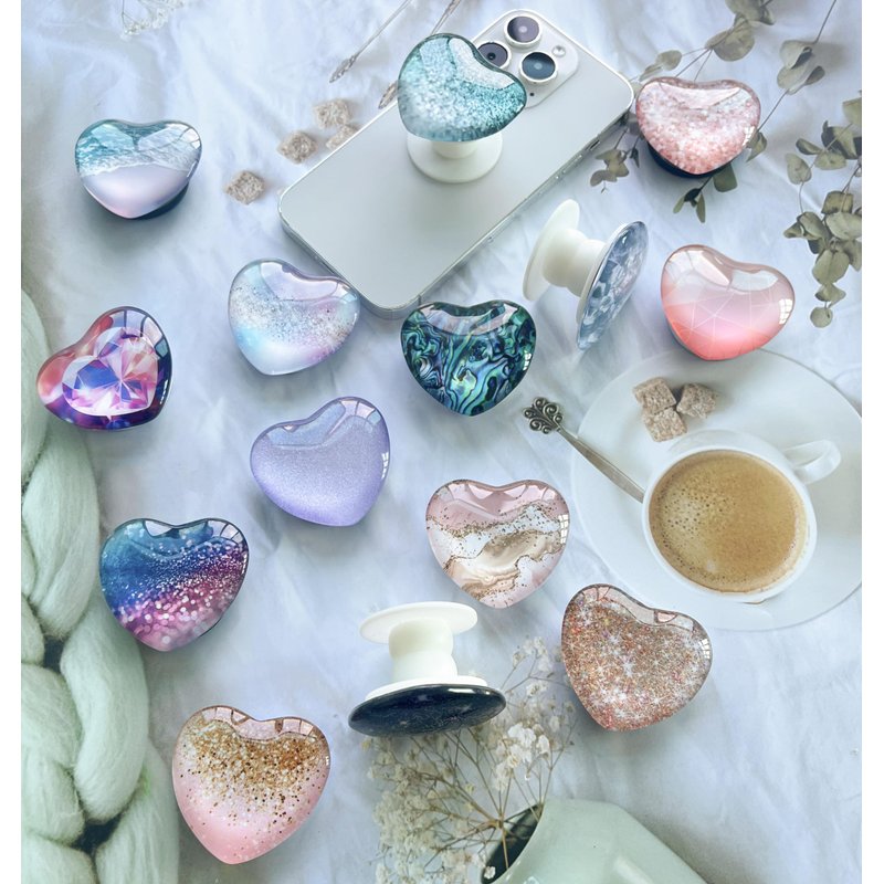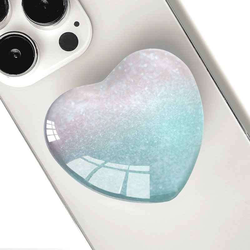 Ksadiye Expandiing Moblile Cell Phone Grip Heart Shape Glass Holder for Smartphones, Cellphone Collapsible Stand( Rose Gold Green