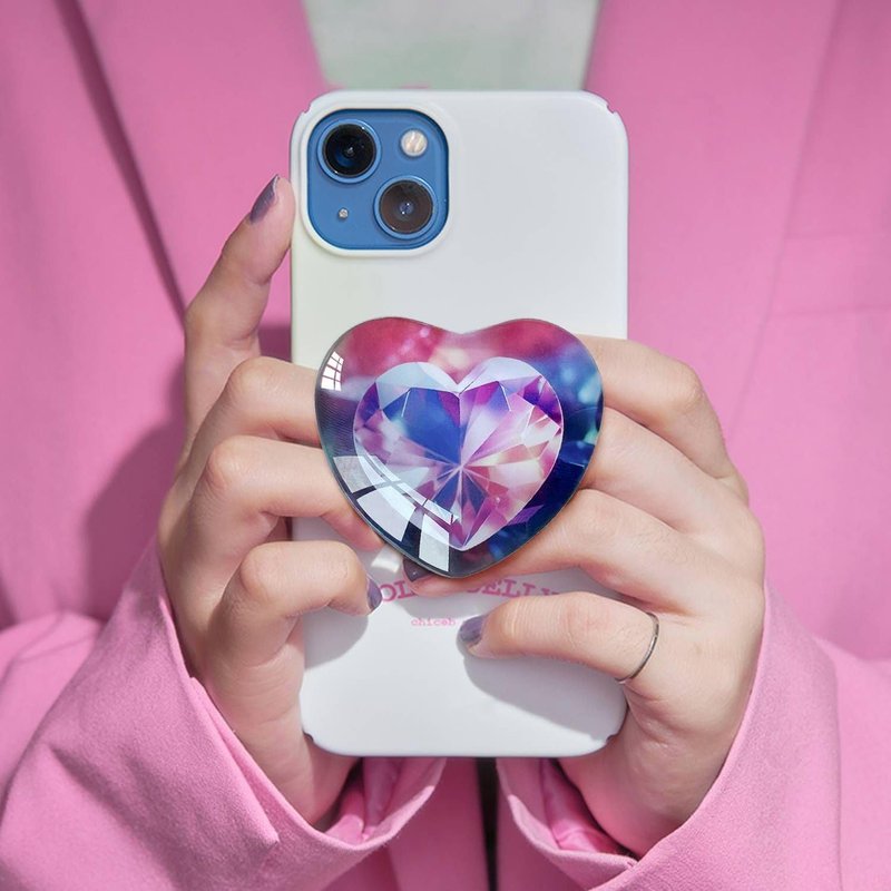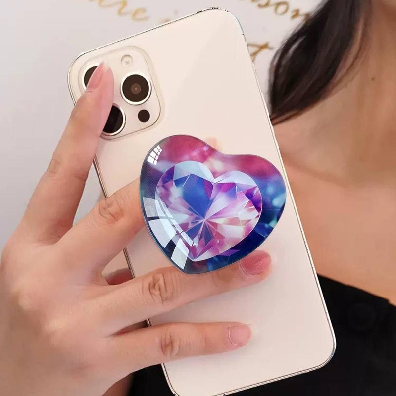 Ksadiye Expandiing Moblile Phone Grip Heart Glass Holder for Smartphones, Cell Phone Collapsible Stand( Purple Pink Diamond