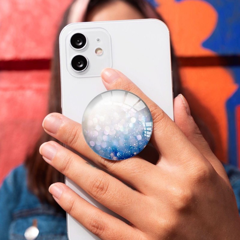 Ksadiye Phone Grip with Expanding Kickstand,Cell Phone Collapsible Stand Blue Rose Gold Sparkling Design for Smartphones