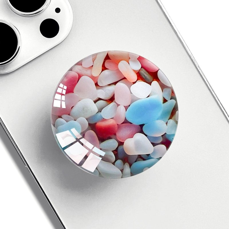 Ksadiye Phone Grip with Expanding Kickstand,Cell Phone Collapsible Stand Pink Blue White Stone Design for Smartphones