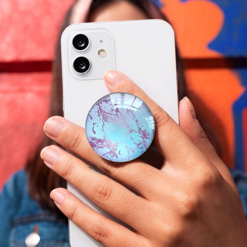 Ksadiye Phone Grip with Expanding Kickstand,Purple Blue Marble Design Cellphone Collapsible Clear Stand for Smartphones