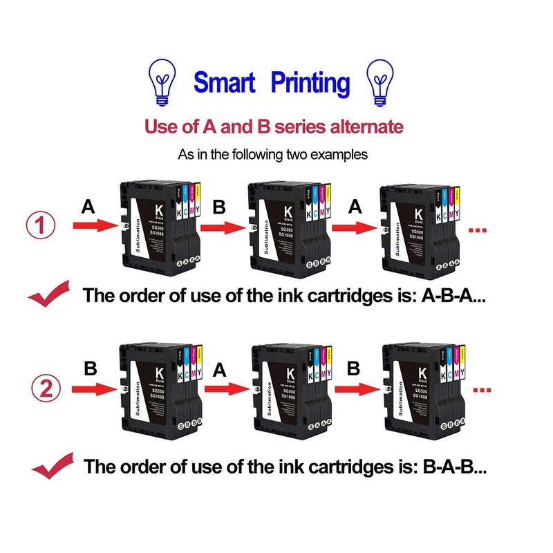 - Superior Quality: The sublimation cartridges are AB series cartridges that provide more stable printing support. It should be noted that the cartridge needs to be used alternately with the A and B series (A-B-A-B-A-B...).