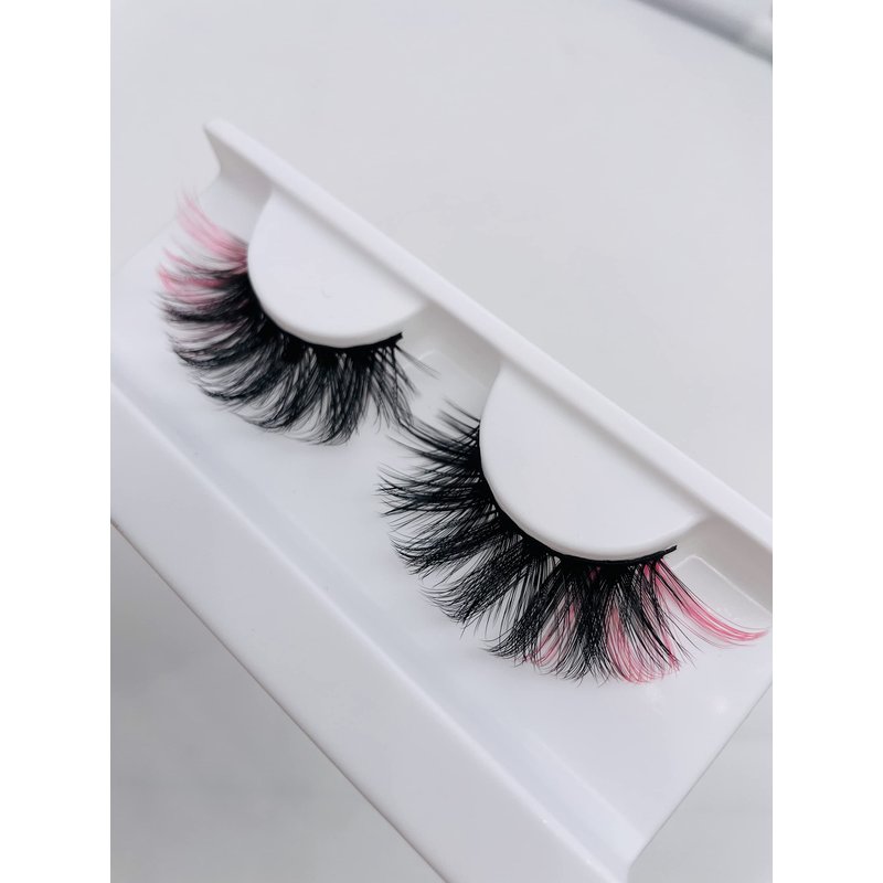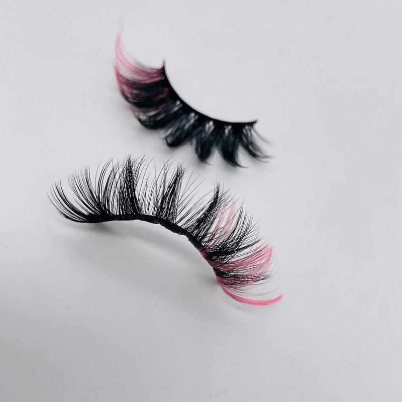 KSYOO Color Eyelashes 8-20mm Mink Lashes 3D Fluffy Volume False Pink Eyelashes Wispy Long Thick Full Volume Strip Eye Lashes 1 Pair (Pink Style-01)