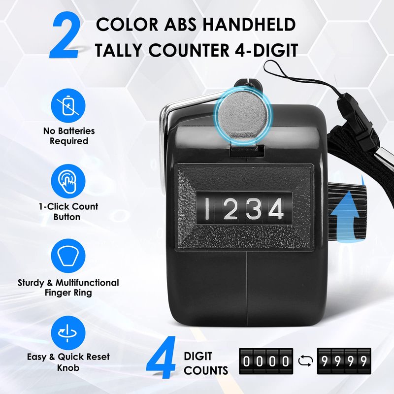 - No Batteries Required: With no battery loaded, our clicker counter works with purely mechanical structure, displaying 4 digits accurately. No need to worry about the power source anymore. Time to choose the counter which is eco-friendlier and more durable!