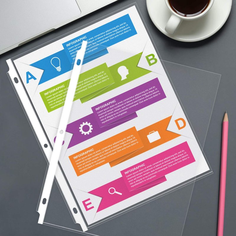 - Top Loading: Easy top loading feature on clear sheet protectors provides a wider top opening, so paper is easy to slide in and take out.