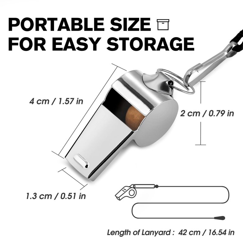 - Super Loud: There is a natural cork pea in our referee whistle. It is easier to blow a loud clear sound. The sound can quickly reach 120 decibels. So you can get others attention quickly.