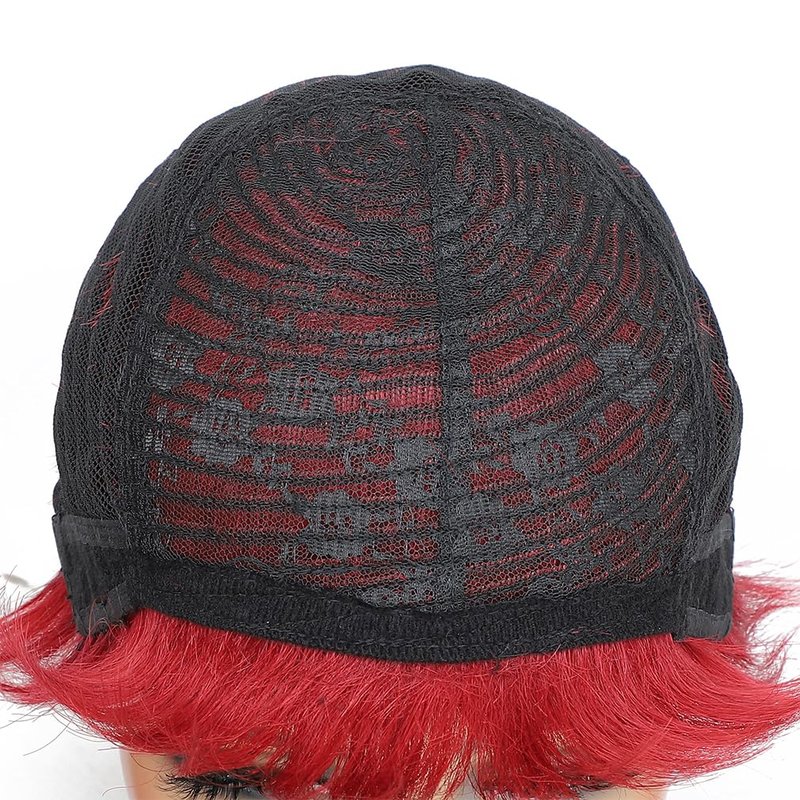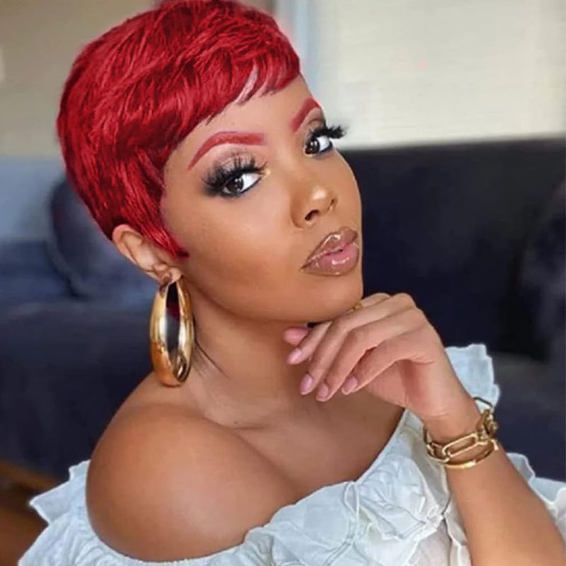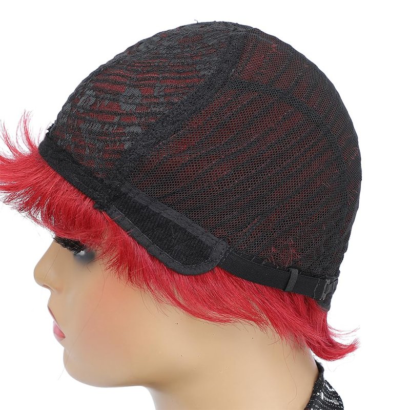 Kubiblue Pixie Cut Glueless Wigs Wear and Go Wig Burgundy Wine Red Short Pixie Cut Human Hair Wigs for Women None Lace Front Wig 99J Pixie Cut Wigs with Bangs for Daily Wear(99J)