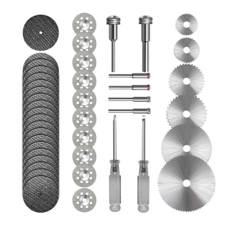 Kuenuilr Cutting Wheel Set Compatible with Plastic 36pcs for Rotary Tool, HSS Circular Saw Blades 6pcs, Resin Cutting Discs 20pcs, 545 Diamond Cutting Wheels 10psc with 2 Screwdrivers