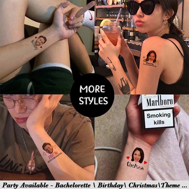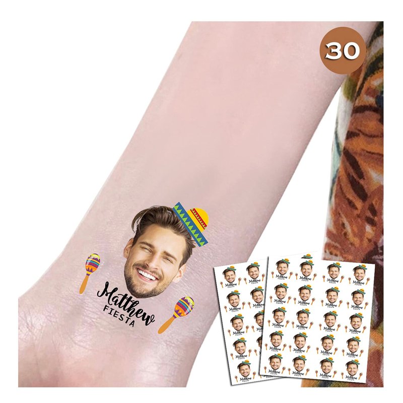 - π These temporary tattoos personalized with the face and name are the perfect items for a themed party. Great fun way to celebrate the party!