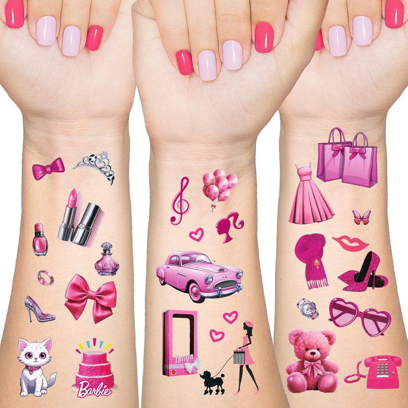- COMPLETE PINK PARTY FAVORS SET: Our 120 piece set includes everything you need to make your little girl's pink-themed party unforgettable, including 50 stickers, 10 bracelets, 10 keychains, 10 tattoos, 10 straws, 10 gift bags, 10 bubble wands, 10 wristbands