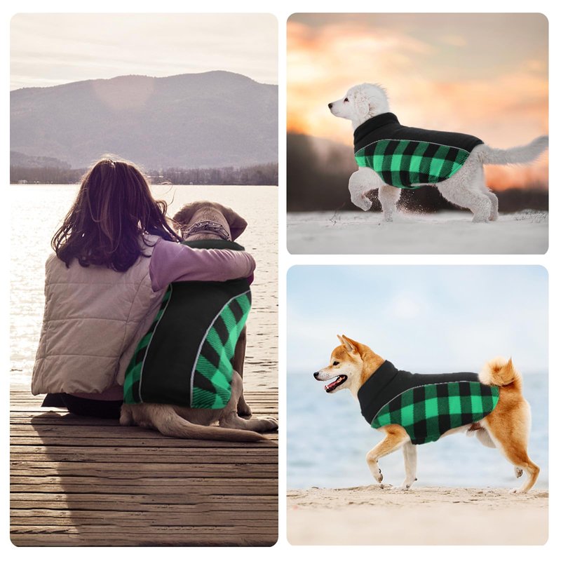 - REVERSIBLE DOG JACKET: Double sided wearing Dog Winter Jacket provides different styles for your choice. The solid color side fits for rainy or snowy day, keeping your dog warm in cold day; the plaid side can be worn in many occasions, such as Christmas, Halloween etc. A best present for your furry baby