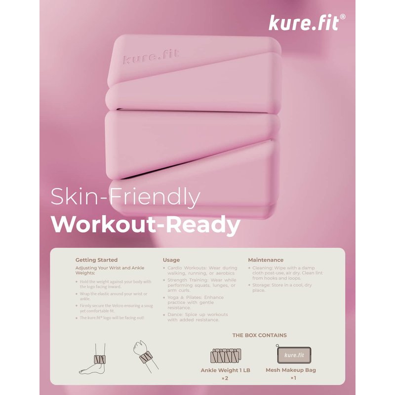 - Style: Welcome to kure.fit, where every piece of our fitness gear is a blend of practical elegance and contemporary design! Experience the epitome of style-conscious modern aesthetics with our Adjustable Wrist & Ankle Weights Set. Designed not just for function but also for fashion, these weights are the ultimate workout accessories for those who value trendsetting style alongside their fitness goals. Fashionable and chic, these wearable bracelets enhance your fitness regimen while showcasing elegant durability and a sleek, functional design. Ideal for a variety of activities—from Yoga and Pilates to running and aerobics—these 1lb pairs are a testament to fashionable fitness. Embrace this essential piece of exercise gear that perfectly marries durability with a chic, contemporary look. Join us at kure.fit and make a statement with every workout. Elevate your fitness experience with our weights that promise not just to meet, but to exceed your expectations in both style and performance. Step into your fitness journey with confidence and grace, sporting the most stylish and practical fitness gear on the market.