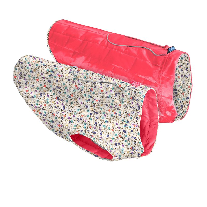 Kurgo Dog Jacket, Reversible Winter Jacket for Dogs, Pet Coat for Hiking, Water Resistant, Reflective, Lightweight, Wear with Harness, Athletic, Loft Jacket (Liberty Floral, XS)