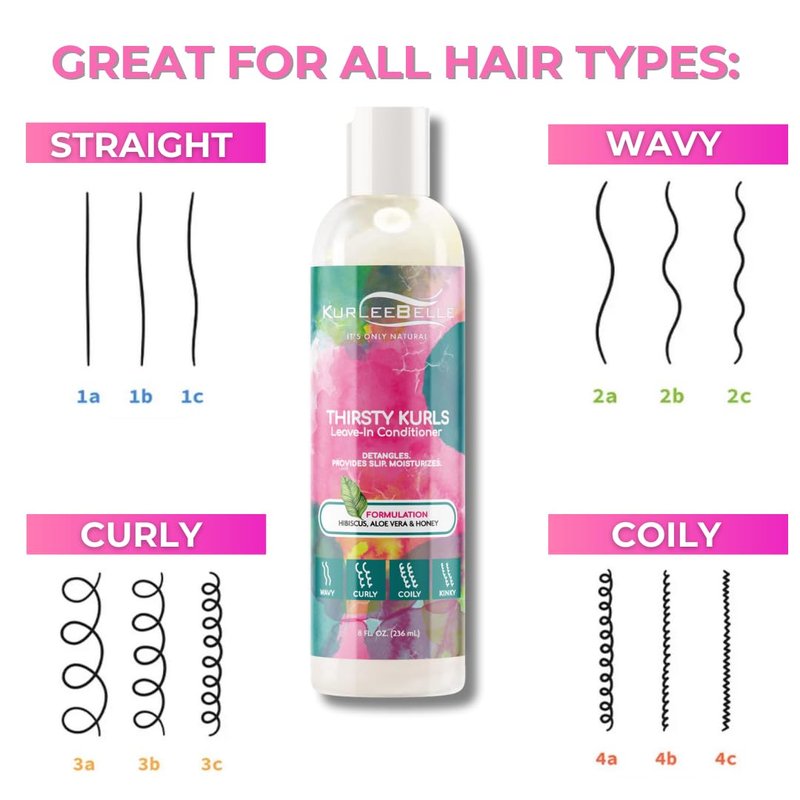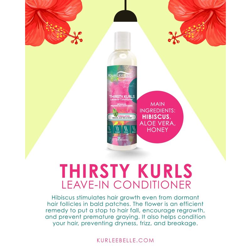 - OTHER BENEFITS: Thirsty Kurls Leave-in Conditioner is a detangler and daily moisturizer. Moms and kids love this product. Can be used as a conditioner and styler for curly hair types. Has a light Hibiscus scent. Water based and very lightweight product. Great for pairing with stylers like crèmes and gels.
