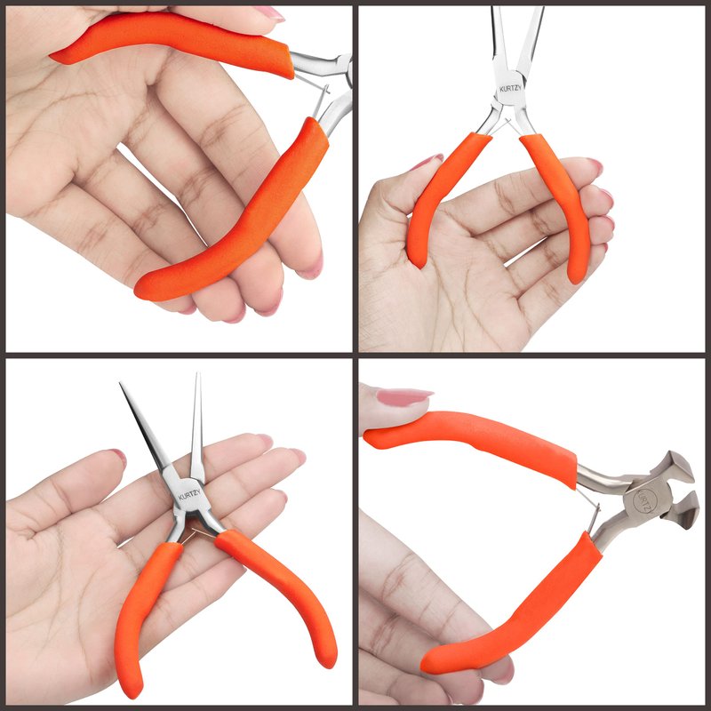 - ERGONOMIC RUBBER HANDLES: Each small plier has a rounded ergonomic handle to fit comfortably in your hand and has a non-slip soft orange rubber grip. This makes each plier comfortable and safe to use without slipping out your hand. They are self-opening and have a solid double-leaf spring that opens the heads, making our nippers great for people with arthritis. These gives great accuracy and control with even the most delicate projects.