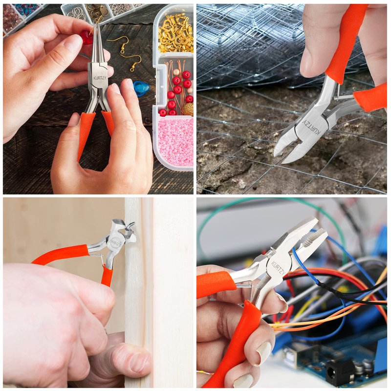 - GREAT TOOL KIT ADDITION: With this one practical kit you can carry out any task or project from cutting, bending, shaping and grabbing. Some heads have serrated teeth for extra-grabbing power, some have long narrow noses for precision and some have smooth heads so do not scratch. Each plier is made from steel and is non-rust. This ensures strength and durability that lasts and would make a great gift or addition to your toolbox. Pliers are shipped coated in oil to ensure rust free on arrival.