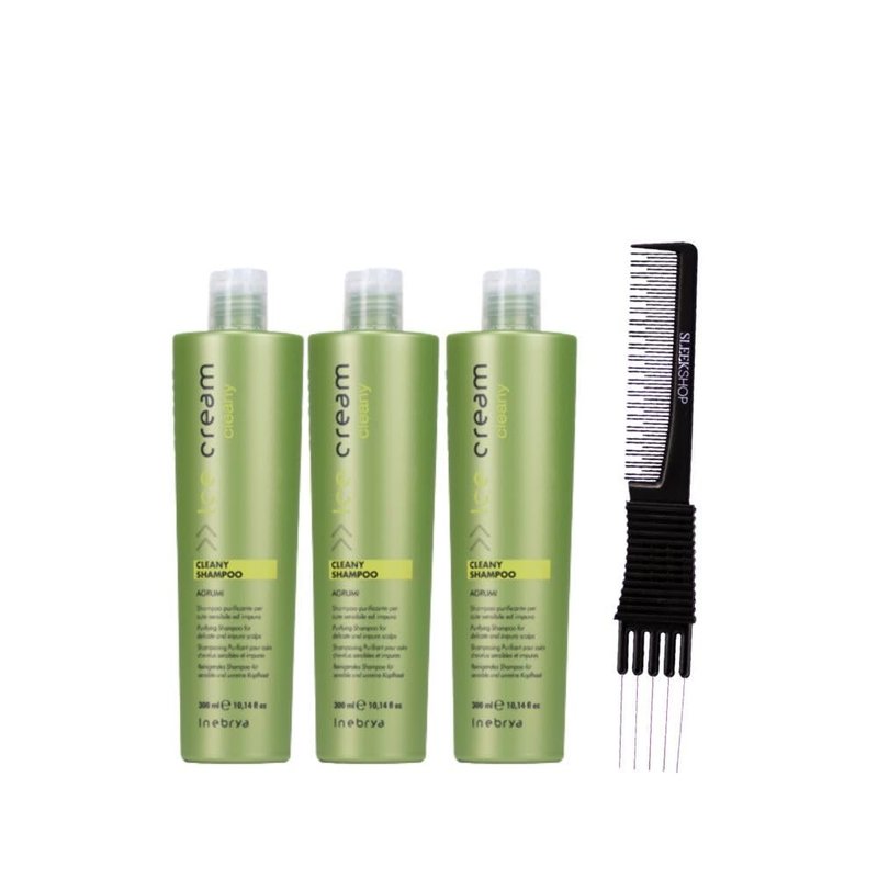 kuss Ice Cream Cleany Shampoo (10.14 oz) with Teasing Comb (Pack of 3)