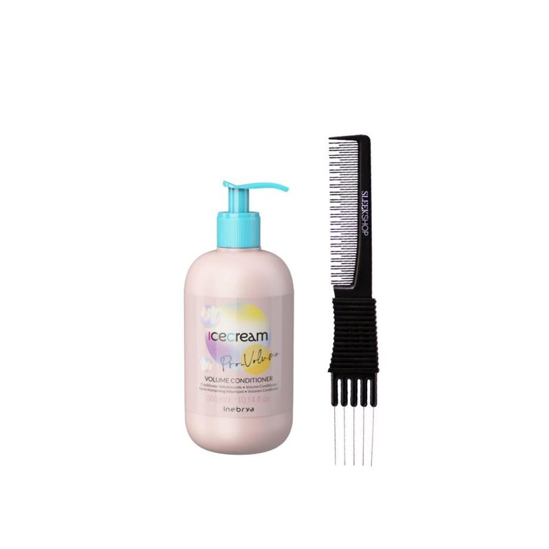 kuss Inebrya Ice Cream Pro-Volume Conditioner (10.14 oz) with Teasing Comb Pack of 1, Beige