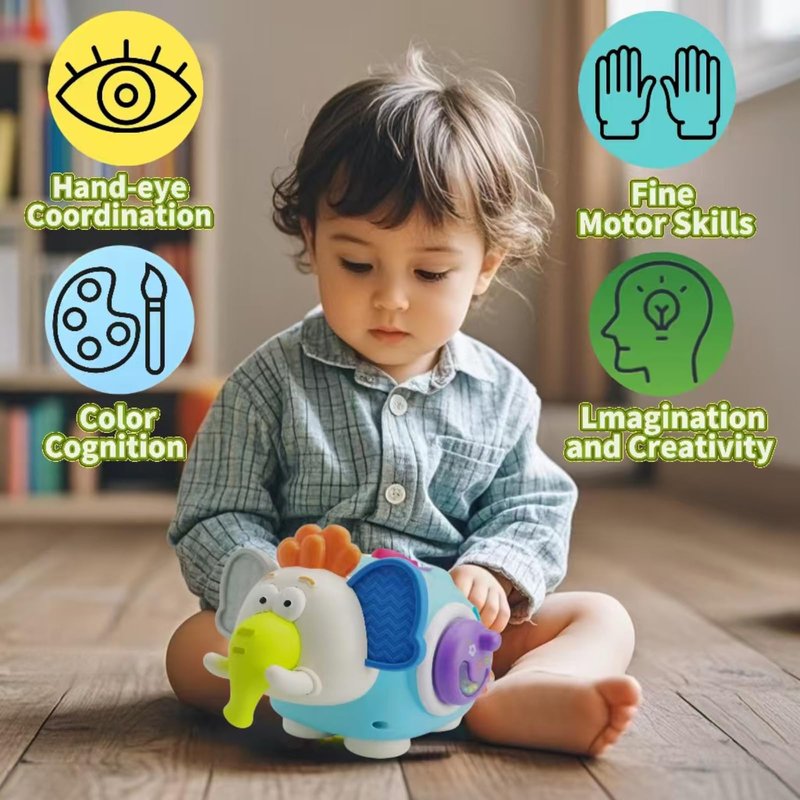 - Eight Sensory Game Experiences: Our Montessori elephant toy offers 8 different sensory activities that subtly promote your baby's sensory development during play. Each activity is a new learning journey, filling your baby's exploration with fun and excitement