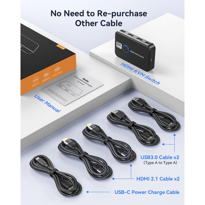 - 【Package includes】1x KVM Switch Hdmi,1x Manual, 2x 3.0 USB and 2x HDMI cable (40inch/1m), which makes your desk more cleaner and tidyer