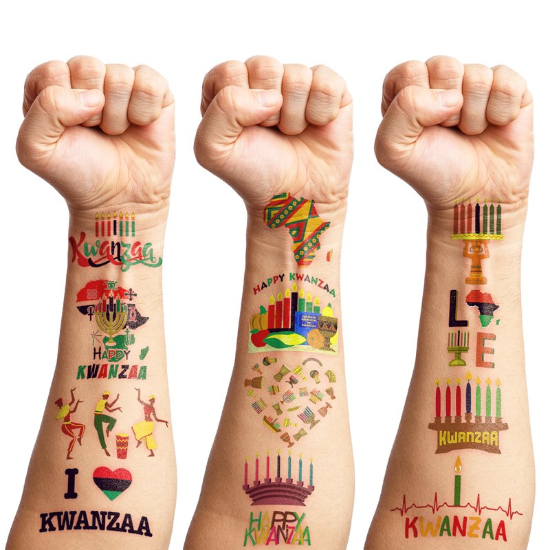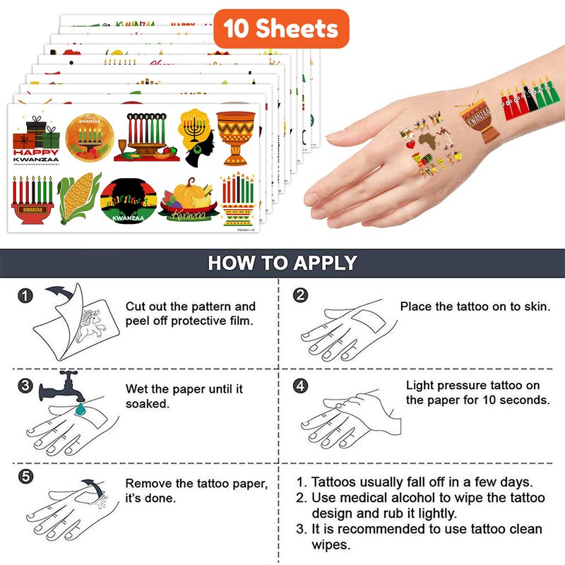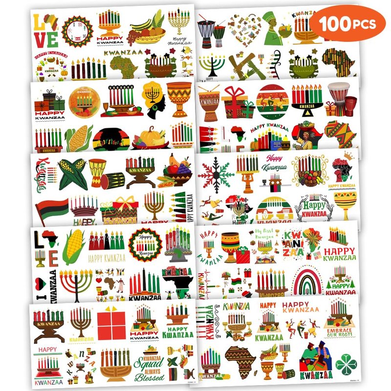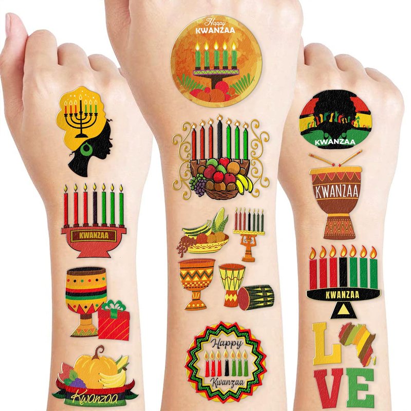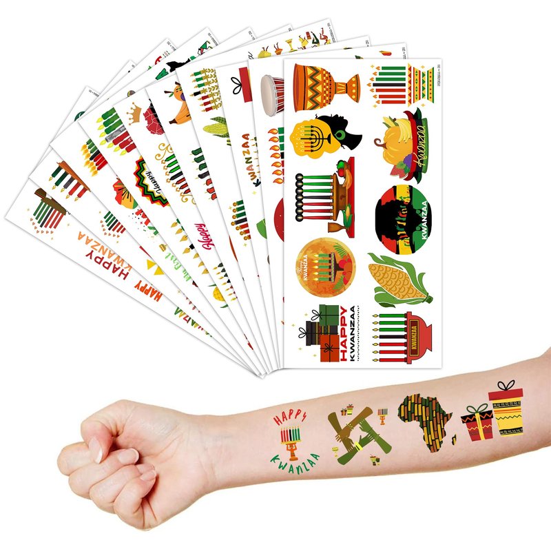 - What You Get: We would like to provide you with ten sheets tattoos for the little one, including various styles, sufficient in quantities and styles to meet your daily requirement of using and decorating. They can easily use this set of Cute Kwanzaa party decorations temporary tattoos and take unique photos to make fond memories. The size of each sheet is 6.1 * 3.1 inches.