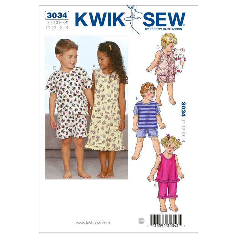 Kwik Sew K3034 Sleepwear Sewing Pattern, Size T1-T2-T3-T4