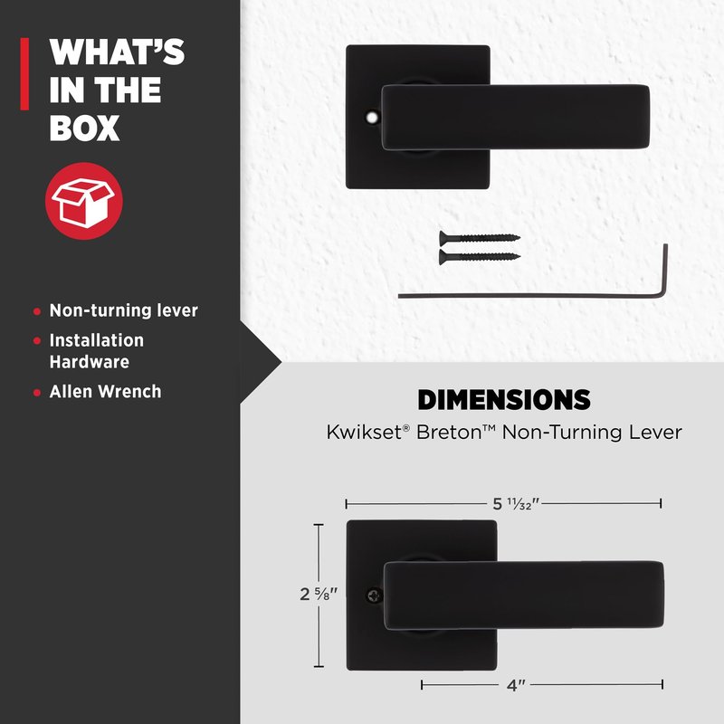 Kwikset Breton Dummy Door Handle, Single Sided Lever for Closets, French Double Doors, and Pantry, Matte Black Non-Turning Reversible Interior Push/Pull Lever, with Microban Protection
