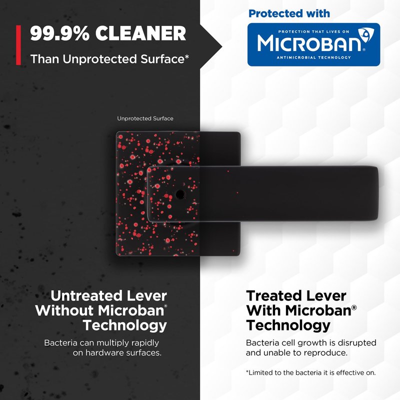 - MICROBAN PROTECTION: Kwikset’s door hardware is treated with Microban, this offers powerful product protection that is 99.9% cleaner than an unprotected surface
