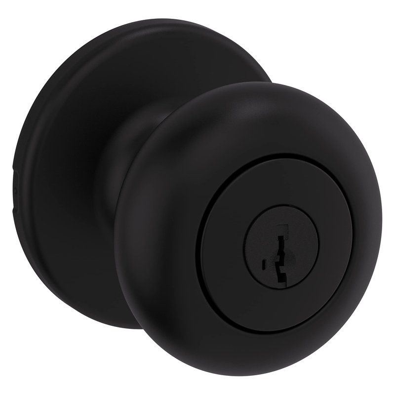 Kwikset Cove Entry Door Knob with Lock and Key, Secure Keyed Handle Exterior Doorknob, Front Entrance and Bedroom, Matte Black, Pick Resistant SmartKey Rekey Security